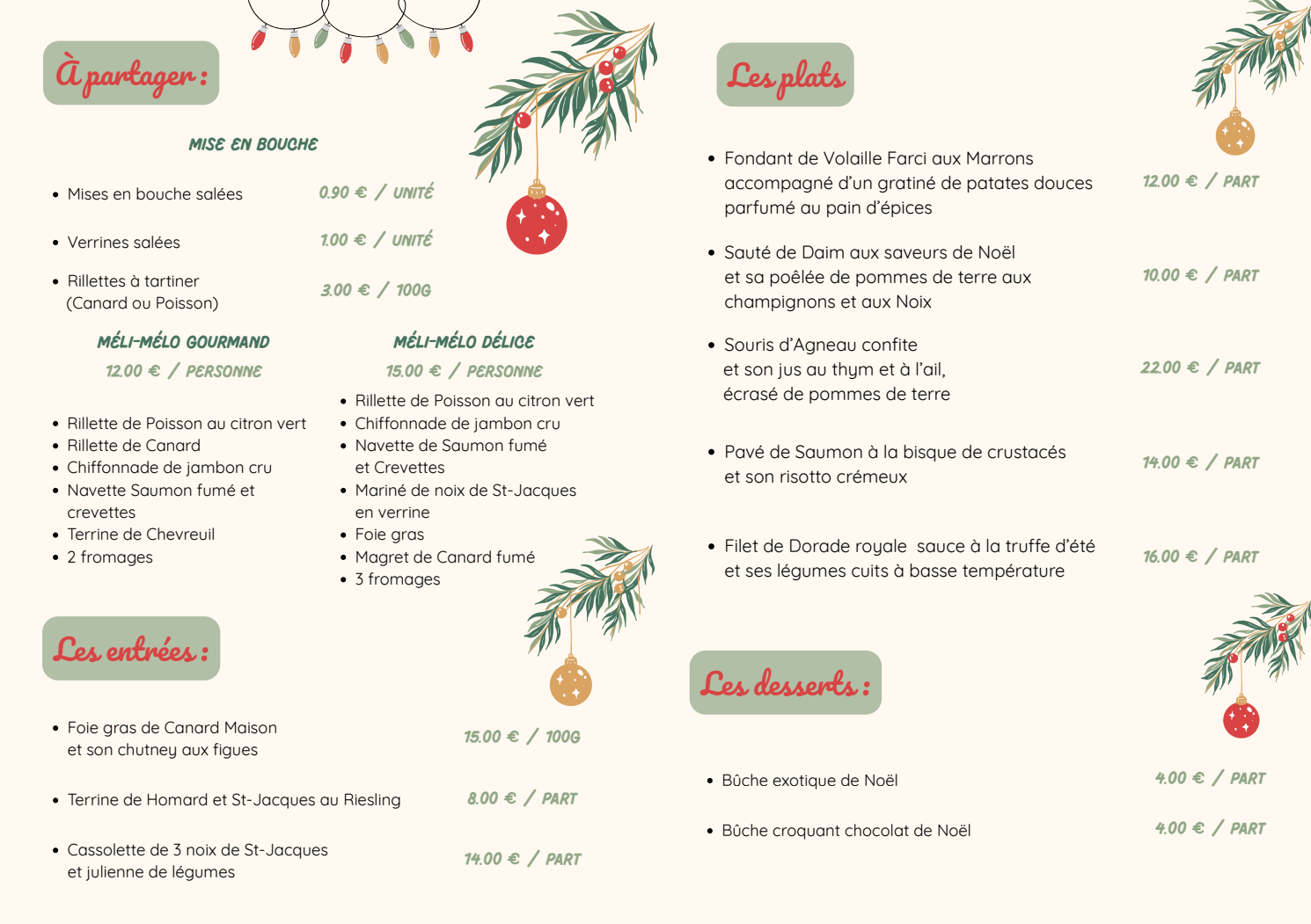 - Ardoise et Menu à 30 € le week-end et jours fériés
